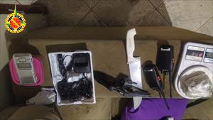 Já durante patrulhamento tático, a equipe do GTAM recebeu informações de populares de que um indivíduo conhecido estaria com uma arma e negociando a mesma. Com as características do suspeito em mãos, a equipe realizou abordagem em vários indivíduos nas imediações da Quadra 615, encontrando um homem com as características informadas. A equipe encontrou uma arma de fogo, drogas, balanças de precisão e outros apetrechos utilizados no tráfico de drogas.