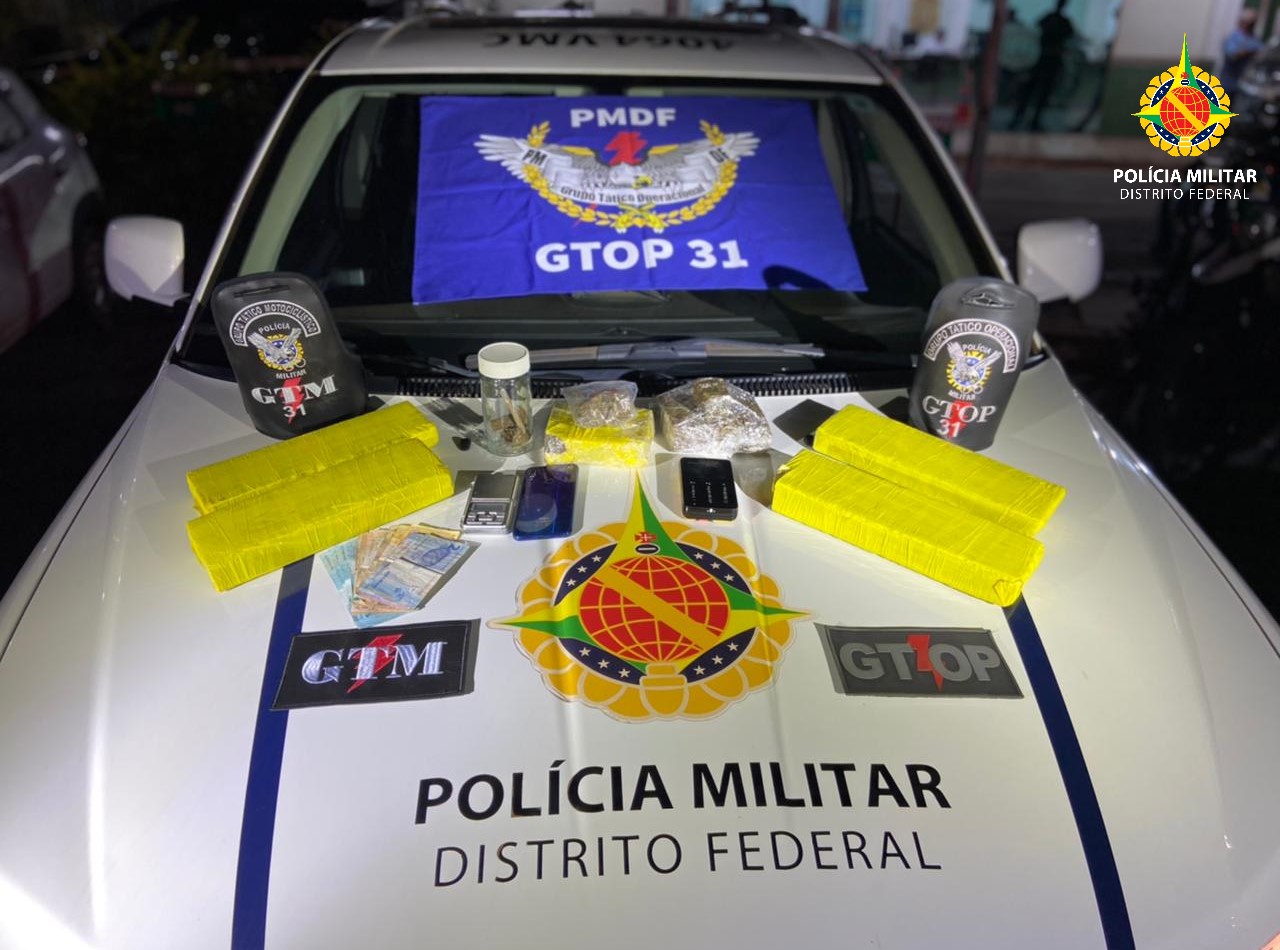 Já à noite, por volta de 20h, na quadra 405 de Samambaia, três homens foram detidos. Dois deles foram vistos em um carro dentro de uma casa. Os policiais abordaram o veículo e encontraram uma porção de maconha e uma balança de precisão.