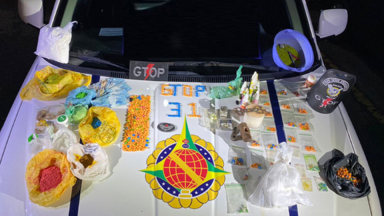 Dentro da casa, os policiais encontraram aproximadamente 500 comprimidos de ecstasy, cinco pacotes de MDMA (droga sintética com características parecidas com o ecstasy), instrumentos e insumos utilizados para produzir os entorpecentes.