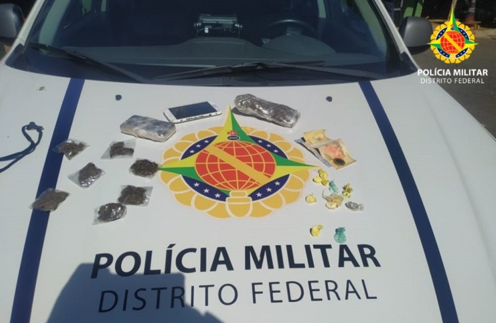 Com eles, foram encontradas duas porções de cocaína e skank. Ao realizarem buscas na residência, os policiais encontraram oito porções de skank fracionados para venda, junto com oito porções de cocaína, dinheiro, comprimidos de rohypnol. No quintal, os militares encontraram mais tabletes de skank e uma balança de precisão.