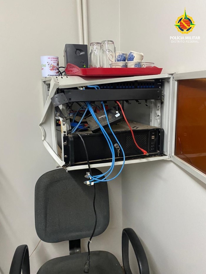 Durante as buscas, os policiais encontraram dois homens armados dentro da sala do cofre, tentando arrombá-lo. Os suspeitos foram detidos e as armas apreendidas.
