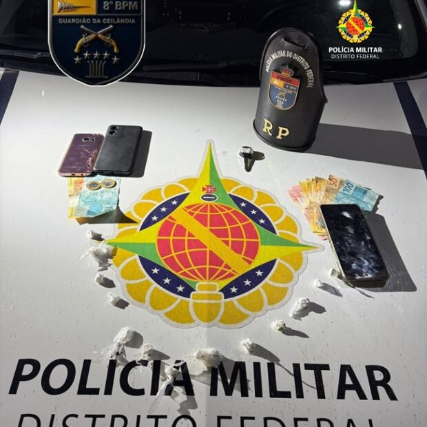 A equipe da viatura RP 28 flagrou os suspeitos comercializando entorpecentes na região. Com eles, foram apreendidas 13 porções de cocaína e R$ 372 em dinheiro.