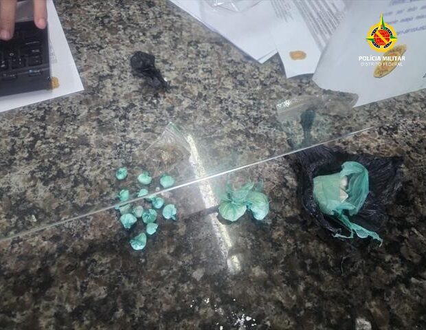 Durante a revista pessoal, os policiais encontraram com um dos suspeitos diversas porções de drogas. Entre o material apreendido havia uma porção maior de cocaína e outras frações da mesma substância já embaladas para venda, além de maconha e haxixe.