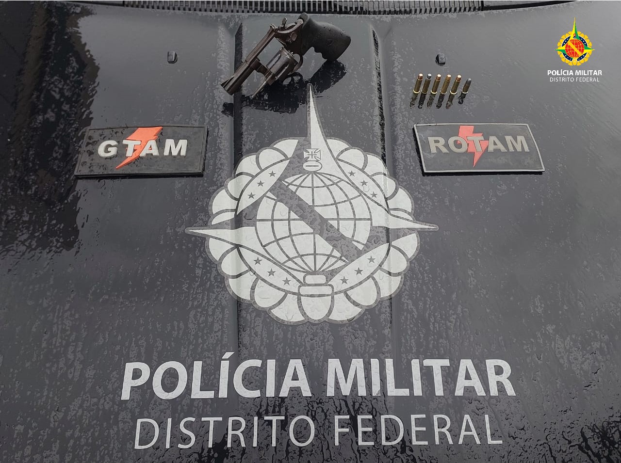 Durante a abordagem, os policiais encontraram no bolso do motorista uma sacola com seis munições calibre 38. Embaixo do banco do motorista a equipe encontrou a arma, um revólver calibre 38.