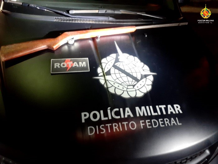 No núcleo rural Monjolo (Recanto das Emas), ainda na noite de segunda (23), dois homens foram presos em um matagal após perceberem a presença de uma viatura e tentarem correr dos policiais. Próximo do local, os militares encontraram uma espingarda, sem munições. A arma foi levada à 27ª DP. A dupla não foi presa.