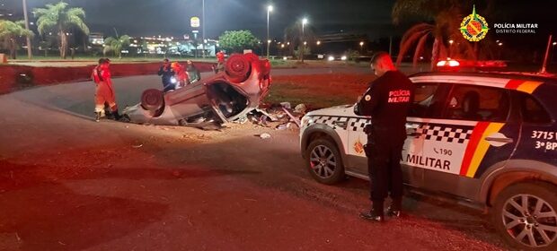 O carro foi avistado na saída da quadra 916, começando uma perseguição em alta velocidade, ignorando todos os sinais de parada dados pelas guarnições. Ao chegar na saída para a EPIA, o motorista perdeu o controle e o veículo capotou, ficando virado de cabeça para baixo. O passageiro permaneceu no local e foi detido pela equipe policial, enquanto o condutor fugiu a pé em direção ao noroeste, sendo capturado na entrada do Setor Habitacional.