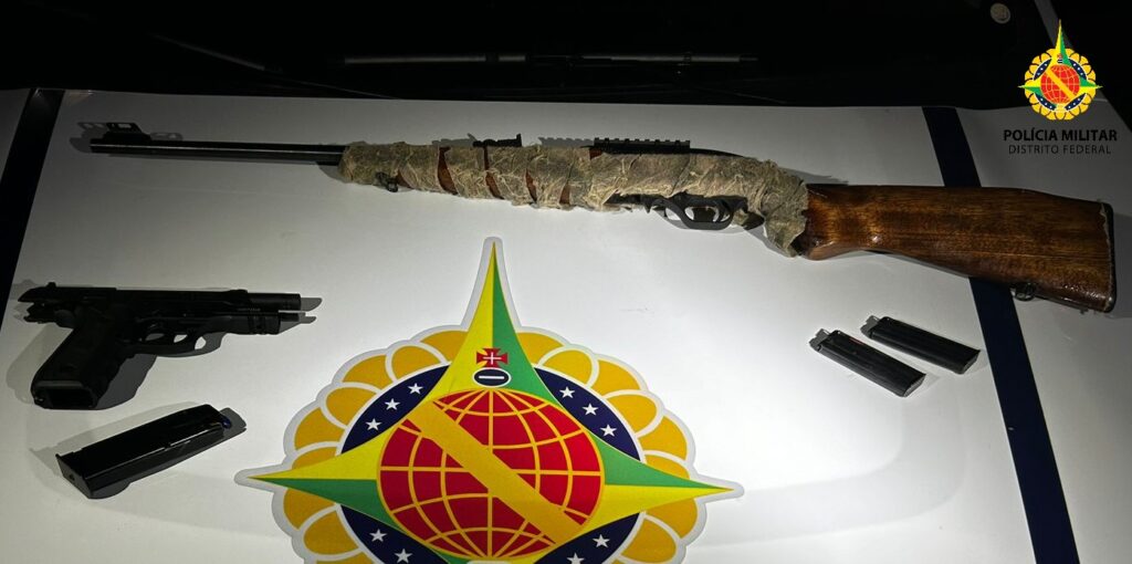 Além disso, verificou-se que o veículo também era produto de roubo e um dos indivíduos tinha um Mandado de Prisão em aberto por crime doloso contra a vida. Os três suspeitos foram conduzidos para a 15ª Delegacia de Polícia (Ceilândia).