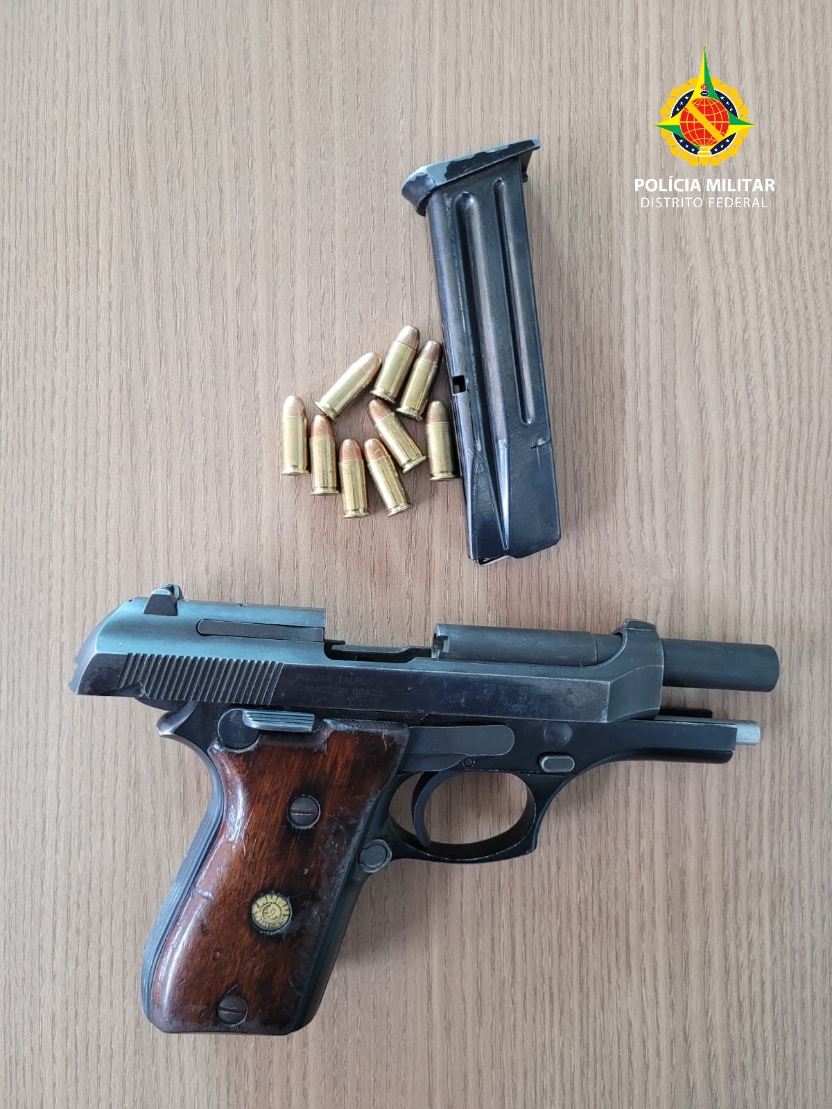 Na tarde deste domingo (3), por volta do meio-dia, a Polícia Militar do Distrito Federal, por meio da RP 3677, efetuou a apreensão de uma pistola carregada com nove munições intactas e um punhal. O incidente ocorreu na região do Riacho Fundo II.