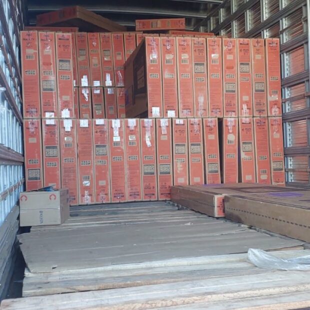 Além do caminhão e dos 358 televisores, foram apreendidas sete munições calibre .380, dois rádios comunicadores, dois veículos, cinco bicicletas, mais de R$ 40 mil em espécie, cerca de 10 celulares e um simulacro de arma de fogo.