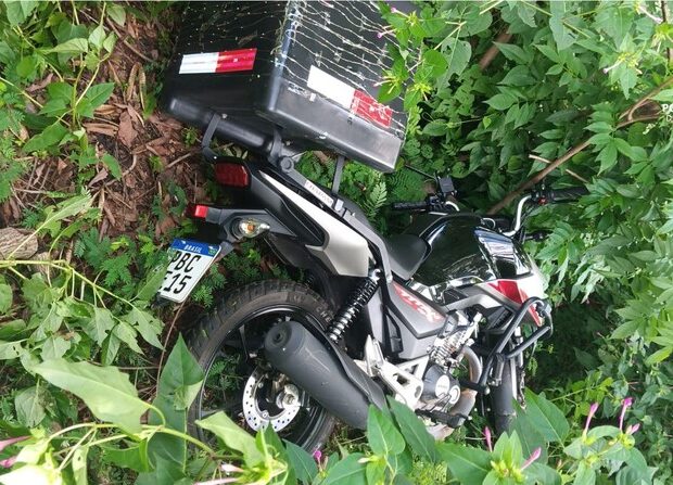 A motocicleta foi localizada no interior do matagal e levada à delegacia da área para os trâmites legais e restituição ao proprietário.