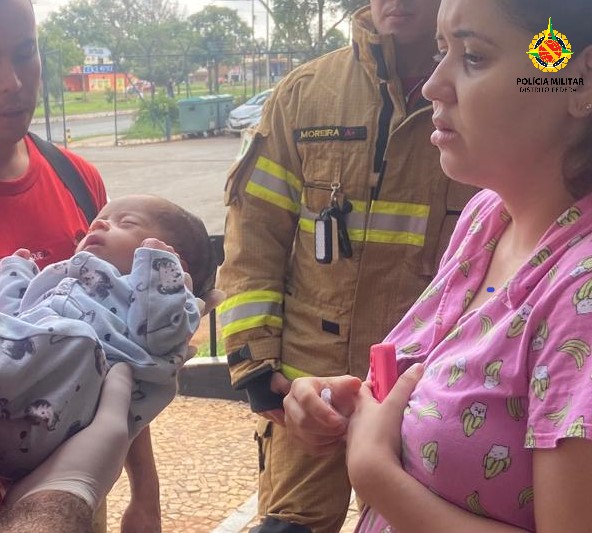 A PMDF foi acionada pela mãe do recém-nascido, seu filho estava engasgado e apresentava coloração roxa.