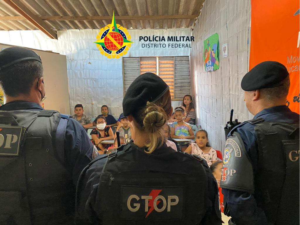 A Polícia Militar do Distrito Federal realizou uma visita especial às crianças moradoras do Assentamento Dorothy, localizado na região da Nova Colina, nesta terça-feira 5 em Sobradinho I – DF. O projeto EDUCAMO que conta com 43 crianças, de 7 a 15 anos, apoia a educação infantil das escolas públicas e recebe as crianças em período oposto ao escolar, como forma de complemento da educação e também acolhimento parar tirar as crianças da rua.