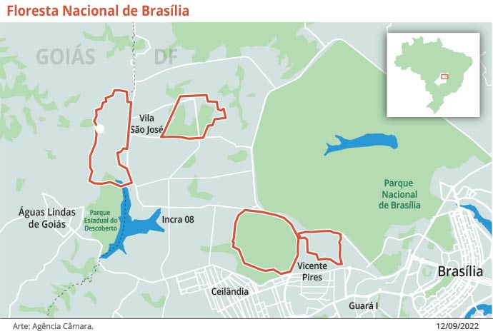 O presidente Jair Bolsonaro sancionou o projeto de lei que reduz, em aproximadamente 40%, a área da Floresta Nacional de Brasília (Flona), maior unidade de conservação do Distrito Federal. O texto da sanção foi publicado na sexta-feira (9) em edição extra do Diário Oficial da União (DOU).