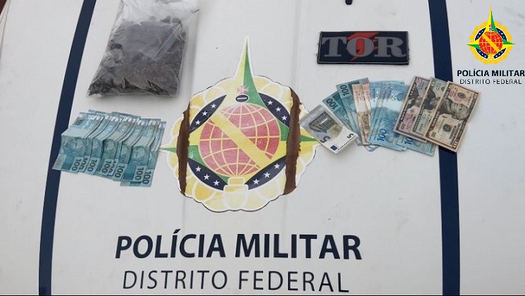 O condutor desobedeceu à ordem de parada e após fuga, colidiu com um barranco. No veículo foi encontrado um pacote com droga conhecida como skunk, R$1.812 reais, US$80 dólares e €5 euros.