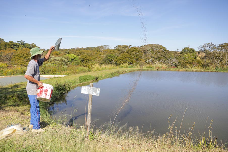 O dia do produtor Ademir Gomes começa cedo. Não são nem 5h e o morador da zona rural de Ceilândia já está de pé. Com um oxímetro nas mãos, percorre os dez tanques que mantém em sua propriedade conferindo o nível de oxigênio da água. Ele aproveita para checar também a temperatura e o pH dos reservatórios. A rotina rígida garante o crescimento adequado das tilápias e piaus responsáveis pelo sustento da família.