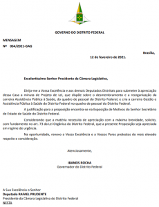 O projeto seguiu para o o presidente da Casa, Rafael Prudente, e no documento, solicita a matéria, com fundamento no art. 73 da Lei Orgânica do DF, seja apreciada em regime de urgência.