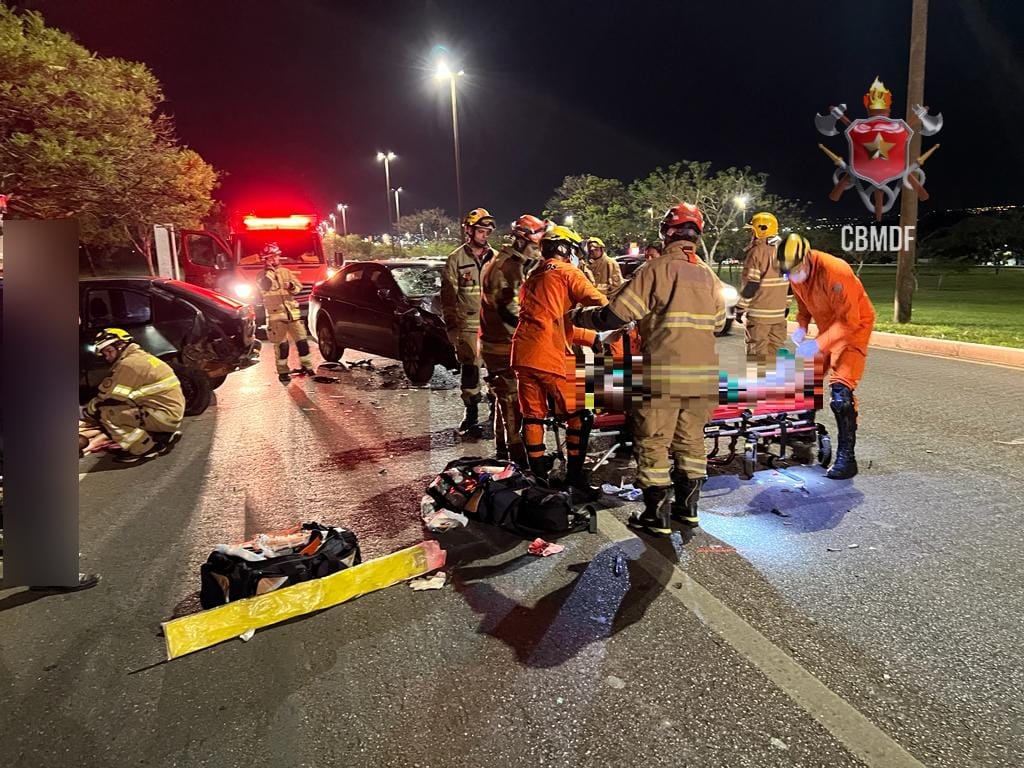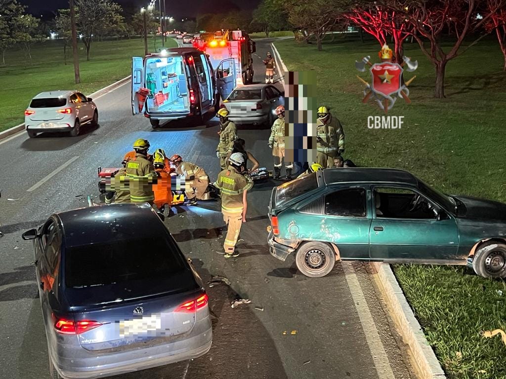 No veículo GM/Kadett, o condutor, após receber atendimento das equipes do CBMDF no protocolo de trauma, também foi transportado para o IHBB-DF para avaliação médica.