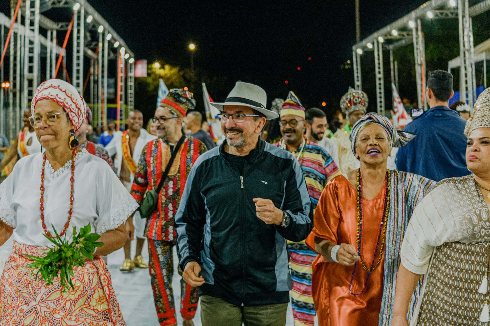 À frente da Escola de Carnaval, Milton Cunha foi o mestre de cerimônias. O carnavalesco paraense, que divide suas atividades entre Rio de Janeiro e Brasília, era todo alegria. “Estou muito feliz”, disse. “Foram nove anos de espera. Eu penso no soldador, no serralheiro, na bordadeira, nesses artistas populares que precisam ocupar esse território, vindos de todas as regiões administrativas”.