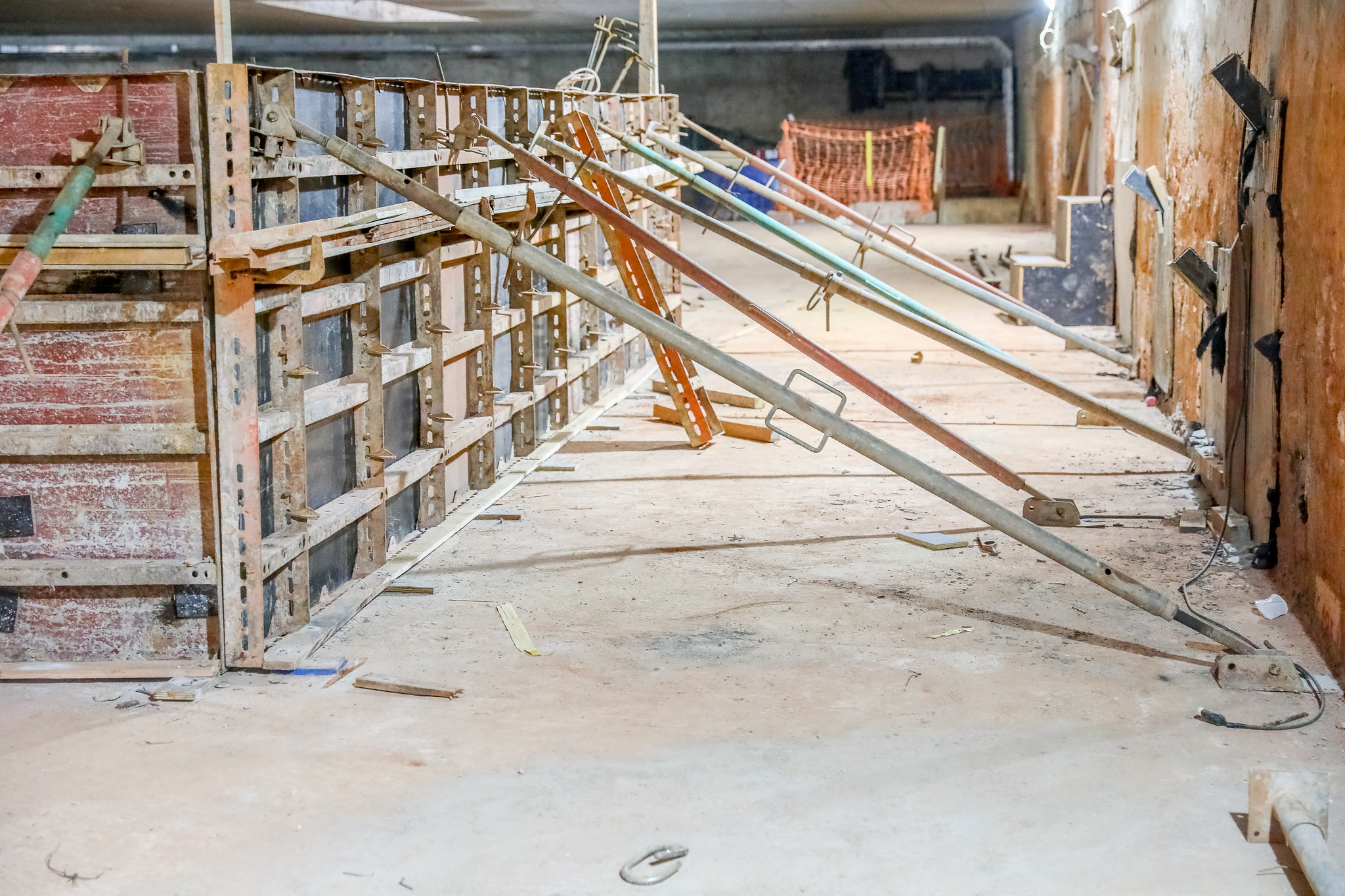 O reforço também foi garantido pela armação dos reservatórios, concluída no início do mês – cerca de 6 toneladas de aço foram usadas no processo. “Todos os vergalhões foram engastados no piso”, ressalta o engenheiro civil Samuel Teles, responsável pela fiscalização da obra do túnel. “A prática de embutir as barras de aço na laje garante uma estrutura muito mais robusta”.