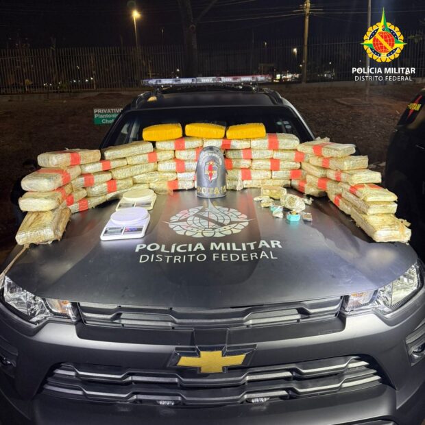Com apoio do serviço de inteligência da PMDF, as equipes confirmaram a veracidade das informações e realizaram a abordagem no endereço indicado. No local, foram encontrados 43 tabletes de skunk — variação mais potente da maconha —, cada um pesando cerca de 1 kg, além de outras 10 porções menores da droga, duas balanças de precisão e materiais utilizados no preparo e na venda dos entorpecentes.