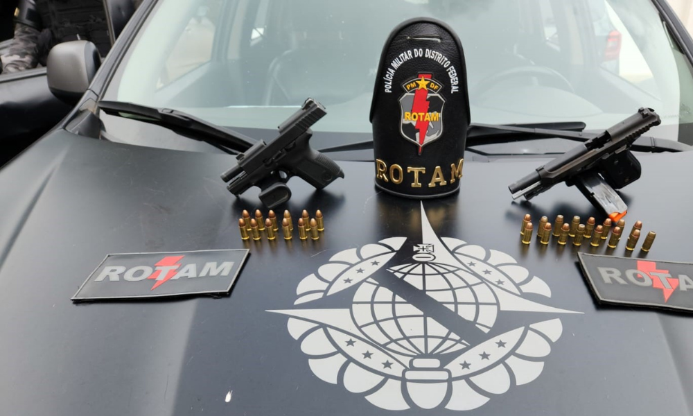 Equipe de polícias militares da Rotam prenderam três homens na Cidade do Automóvel nesta quinta-feira, 09. O trio estava em uma caminhonete e um deles desembarcou na SRIA 14 conjunto 10. A equipe de policiais passava pelo local e perceberam que um dos ocupantes desceu armado.