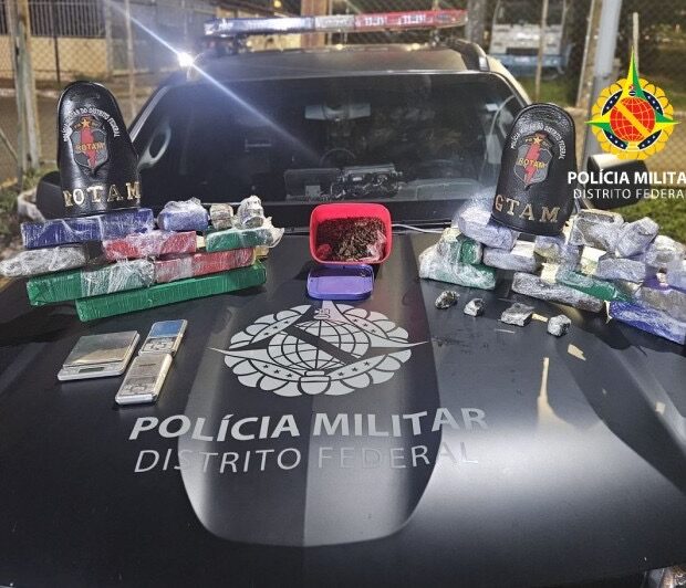 Policiais militares da Rotam prenderam um homem de 35 anos e uma mulher de 28 anos por tráfico de drogas, na tarde desta sexta-feira (9), em Santa Maria. A ação ocorreu após denúncia da comunidade sobre o transporte de entorpecentes entre Valparaíso de Goiás e o Distrito Federal.