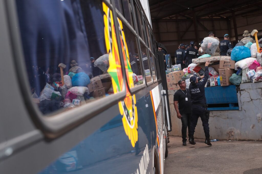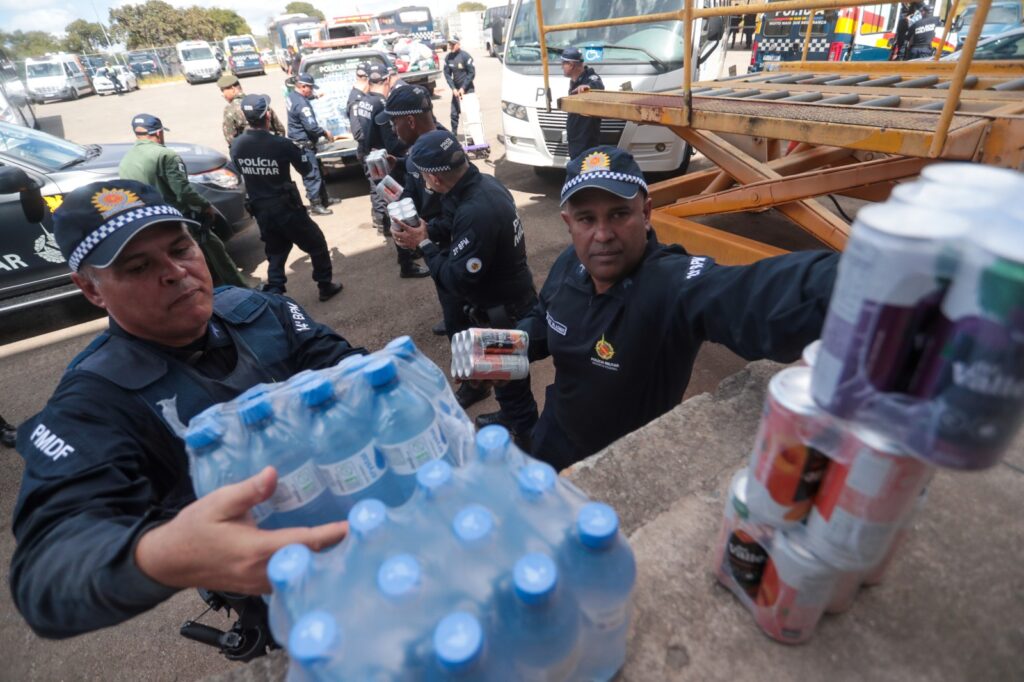 Para transportar os itens, foram necessárias 114 viaturas policiais divididas entre 21 vans, sete caminhões, 27 ônibus, 35 caminhonetes operacionais e 24 motocicletas que fecharam o trânsito para o comboio de quase 500m cruzar o DF. Além dos militares escalados para o dia do serviço (quantidade não informada), 300 homens e mulheres abdicaram de suas folgas para vestir a farda da solidariedade.