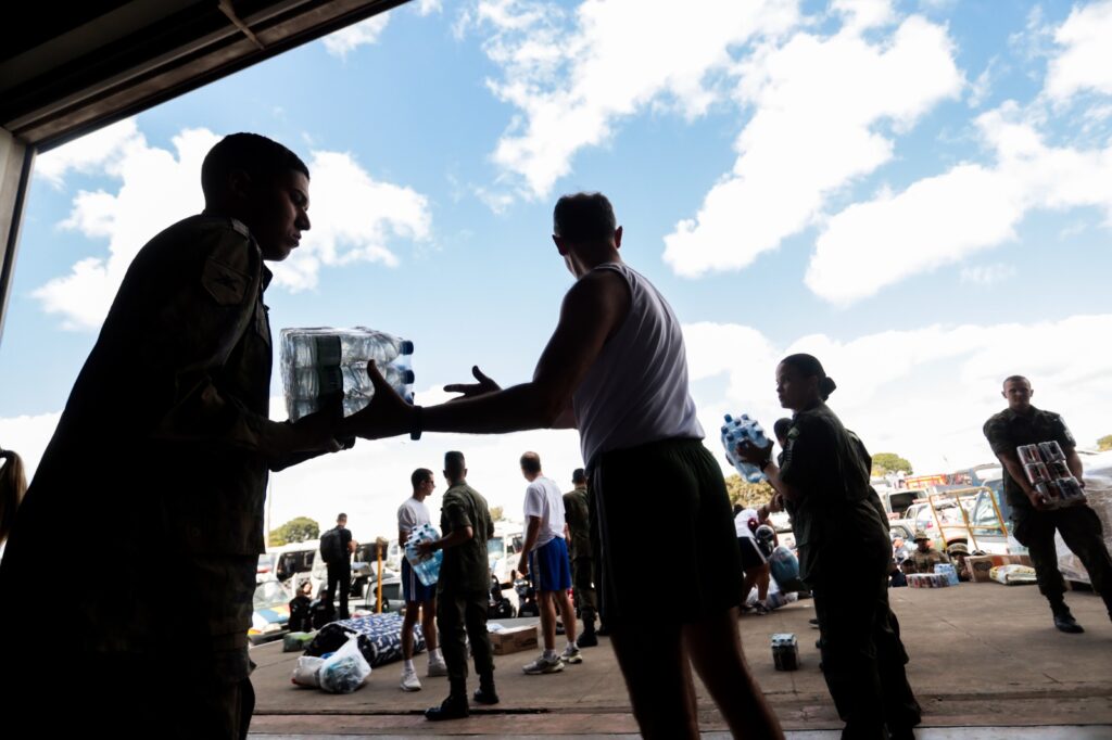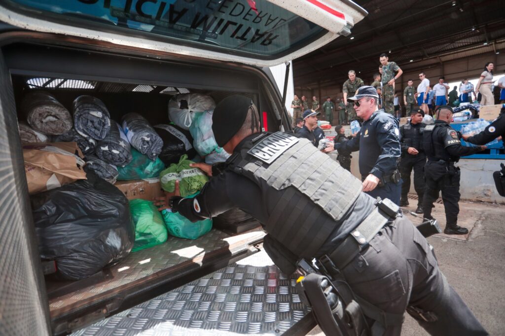 O Coronel Miguel da Força Aérea Brasileira recebeu toda a doação da PMDF e informou que a FAB está separando os materiais em três galpões. Ainda segundo o militar, cada avião de transporte da FAB (Airbus A330) consegue carregar 40 toneladas por voo. “Estamos trabalhando em três turnos, manhã, tarde e noite. Para conseguir levar as doações para a base aérea da FAB em Canoas, no Rio Grande do Sul”, explicou.