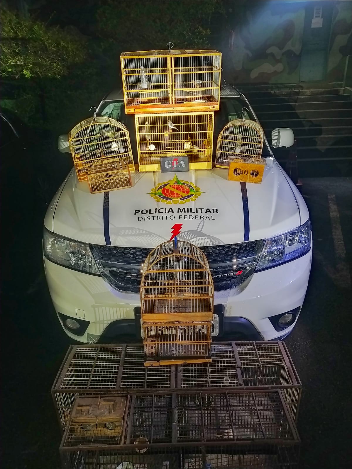 A equipe do Grupo Tático Ambiental (GTA) patrulhava a região, quando visualizaram algumas gaiolas no interior de uma residência.