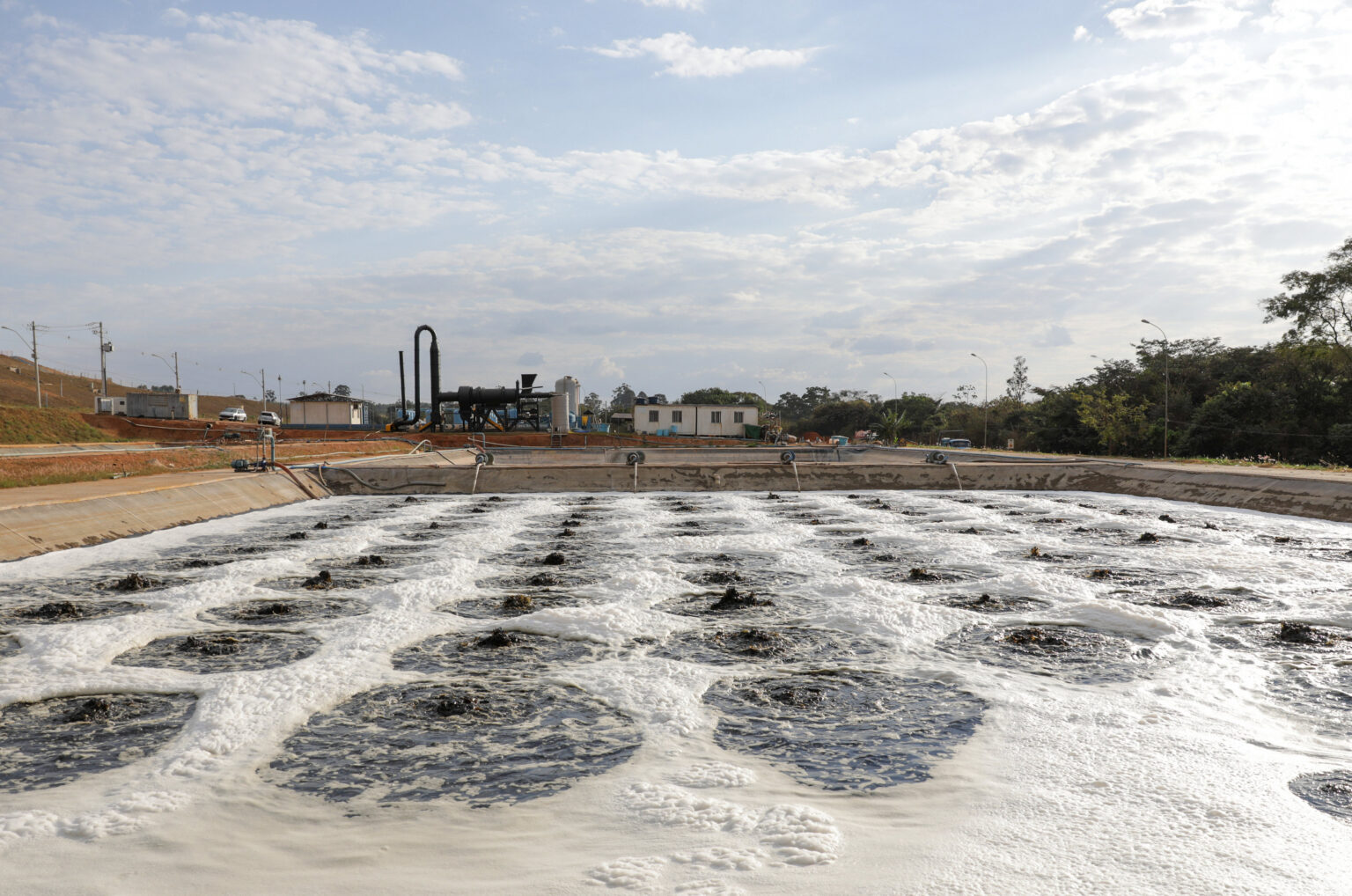 Ao ser drenado, o chorume bruto segue para a lagoa de contenção, para aguardar o tratamento. O processo se inicia em reatores, onde são inseridos produtos químicos para mistura e decantação de impurezas. Em seguida, o líquido passa por uma linha de filtros, que finalizam o processo de tratamento. “O Aterro Sanitário possui uma estação de tratamento que utiliza processos físico-químicos para transformar o chorume em uma água que pode ser utilizada para fins não potáveis. Ao final, temos um líquido com qualidade suficiente para escoar no córrego Melchior”, afirma Andrea Almeida, chefe de medição e monitoramento do SLU.