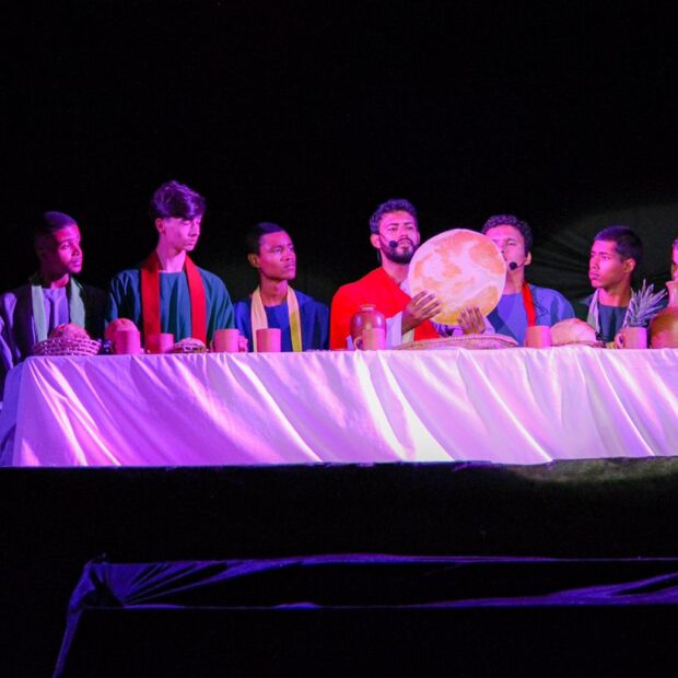 A coordenadora do grupo de oração Cristo Jovem e também integrante do núcleo de direção, Millena dos Santos, também destaca que o trabalho nos bastidores começa muito antes da encenação.