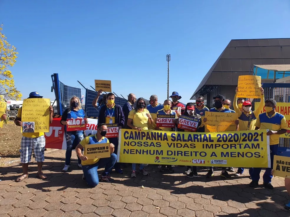 Pelo 16º dia de greve nacional, os trabalhadores dos Correios fazem manifestação desde 4h30 desta quarta-feira (2) no Terminal de Cargas do Aeroporto Internacional de Brasília, um dos terminais mais movimentados de recebimento, processamento e entrega de cargas do país. Também está paralisada toda a malha aérea dos Correios no Distrito Federal.
