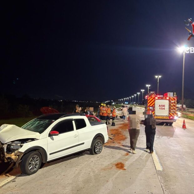 Uma colisão envolvendo três carros mobilizou equipes do Corpo de Bombeiros Militar do Distrito Federal na madrugada desta segunda-feira (13), na via Estrutural, nas proximidades da Cidade do Automóvel.