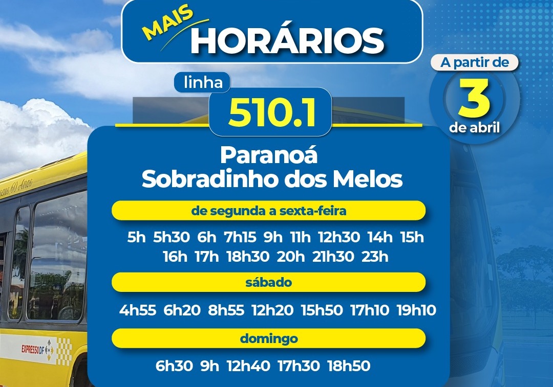 A Linha 510.1, que faz trajeto entre o Paranoá e Sobradinho dos Melos, vai operar com ajustes e acréscimo nos horários.