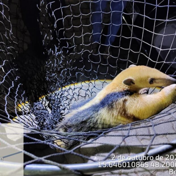 No local, a equipe localizou um tamanduá-mirim (Tamandua tetradactyla). A captura foi realizada de forma segura, garantindo a integridade tanto do animal quanto das pessoas presentes. Após avaliação preliminar, constatou-se que o animal estava em boas condições de saúde.