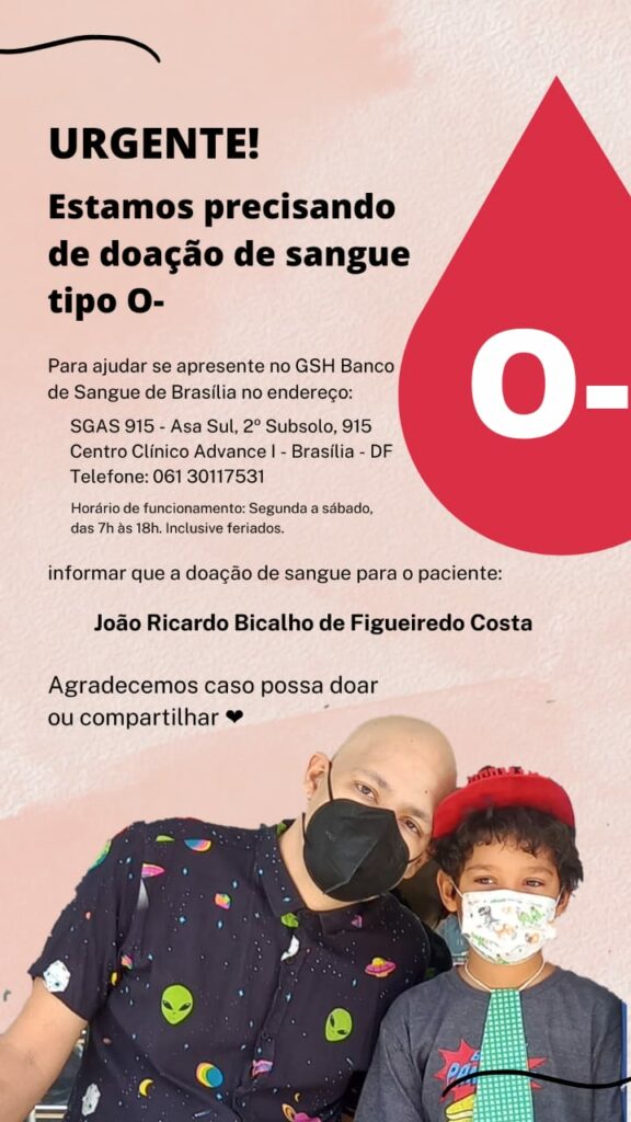É aí que entra o maior problema. João é O-, um sangue considerado ‘doador universal’, mas que só recebe do O-. A campanha para doação começou na última sexta-feira (2), mas até agora, ninguém doou.