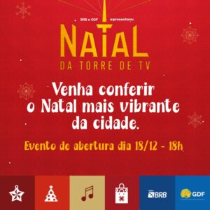 A Torre de TV, cartão-postal de Brasília, terá uma programação especial de Natal a partir das 18h deste domingo (18). O projeto Natal do BRB na Torre de TV será realizado até o dia 8 de janeiro, oferecendo um espetáculo de luzes e cores que, em 2022, tem como tema O melhor do Natal está dentro de nós.