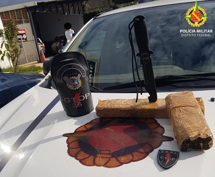 Os policiais conseguiram encontrar o suspeito e o abordaram. Após revista pessoal e busca na mochila, foram encontrados dois grandes tabletes de maconha, totalizando aproximadamente 1,6kg da droga.
