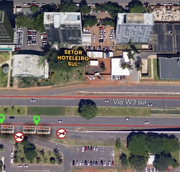 Além disso, quem se desloca pela via S2 em direção à W3 Sul terá o tráfego interrompido na altura do hotel Meliá Brasil 21, onde haverá um desvio pela W5 Sul que permitirá acesso à W3 Sul pela via S3. Haverá painéis móveis indicando os desvios e agentes de trânsito atentos a toda movimentação.