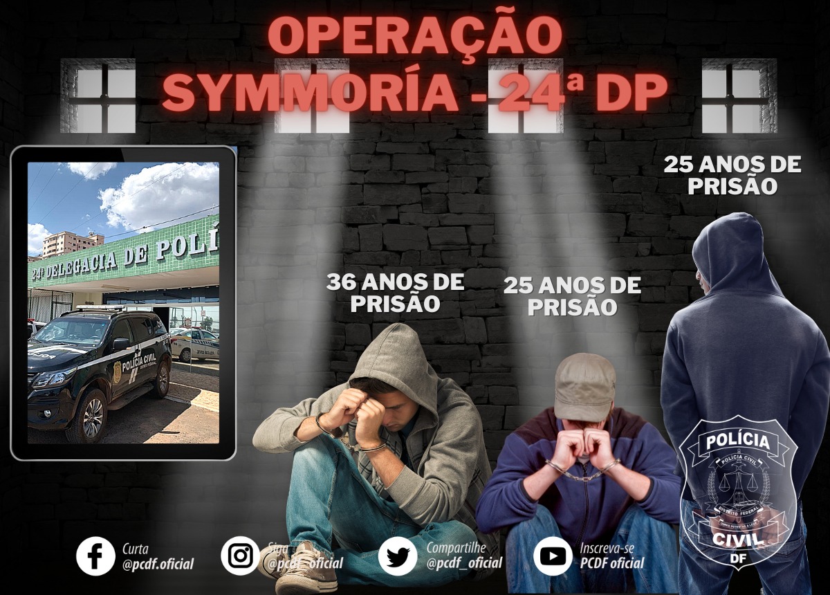 A Polícia Civil do Distrito Federal (PCDF), por meio da 24ª Delegacia de Polícia (DP), deflagrou a Operação Symmoria, em julho de 2019, que prendeu três pessoas pela prática do crime de latrocínio tentado, que teve como vítima um sargento do batalhão de choque da Polícia Militar.