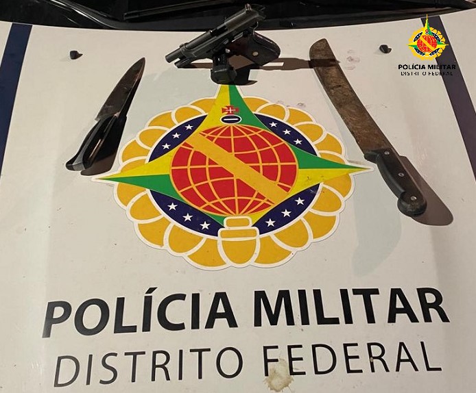 As equipes encontraram um facão e uma faca no interior do veículo. Uma das equipes retornou ao local onde a arma havia sido jogada e recuperou uma pistola calibre 380. Os homens foram conduzidos à delegacia para o registro da ocorrência.