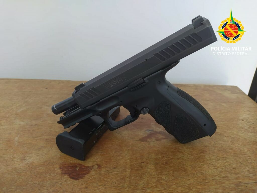 Com as características informadas pelas testemunhas, os policiais conseguiram localizar e abordar os três indivíduos, que foram reconhecidos. Durante a ocorrência, foi noticiado um disparo de arma de fogo por uma das testemunhas, o que levou os policiais a encontrarem uma arma de fogo de calibre 9mm com três carregadores abandonada no local.