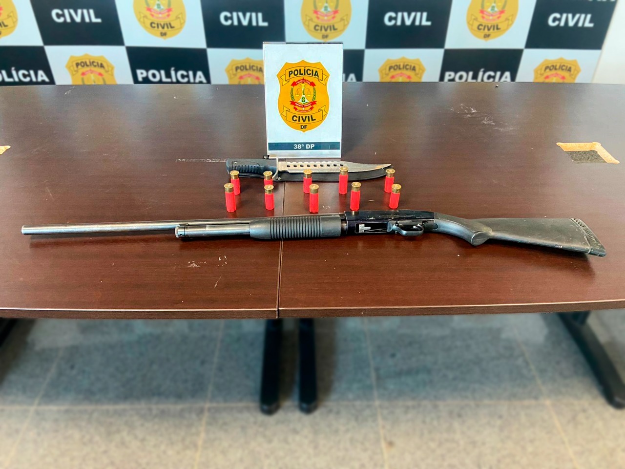 Com eles, foi encontrada uma espingarda calibre .12. O condutor do veículo, um sargento aposentado da PMDF, assumiu ser o dono da arma fria (sem registro) e confessou estar vendendo ela pelo valor de R$ 7 mil.