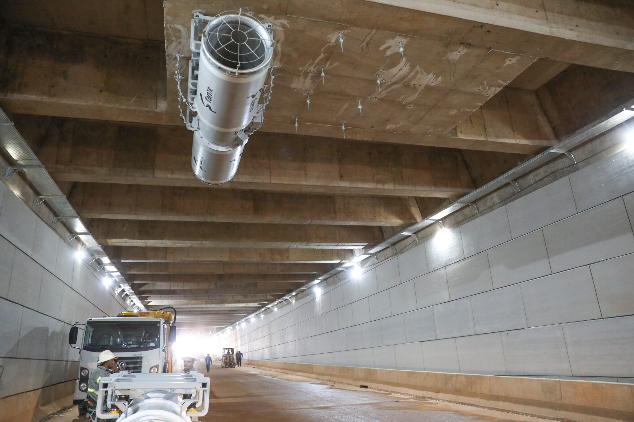 O Túnel de Taguatinga já tem 14 ventiladores instalados em sua laje superior. Os aparelhos foram acomodados no lado sul da passagem, que leva da Avenida Elmo Serejo até a Estrada Parque Taguatinga (EPTG). Para que o sistema de exaustão neste trecho esteja completo, falta a fixação de apenas oito equipamentos.