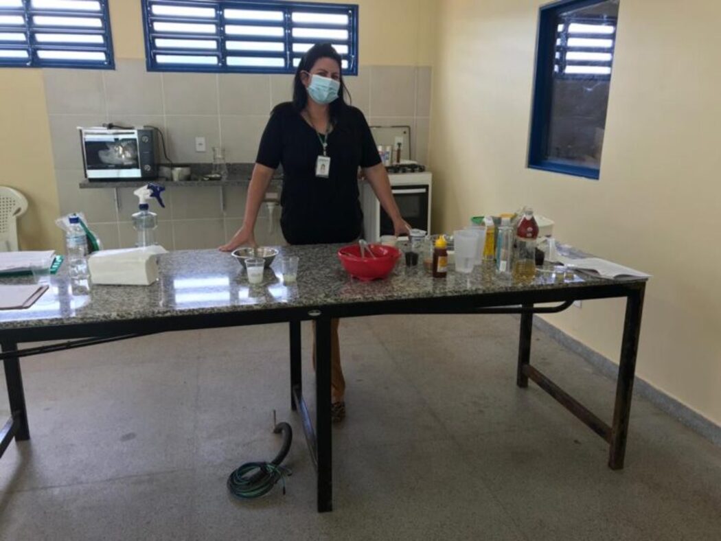 Ministrada pelas extensionistas em economia doméstica Sônia Alves Lemos e Ana Paula Neri Rosado, a oficina teve como objetivo ensinar as mulheres a aproveitar ingredientes da horta e da cozinha de casa para fabricar produtos que possam melhorar sua autoestima e ainda gerar renda.