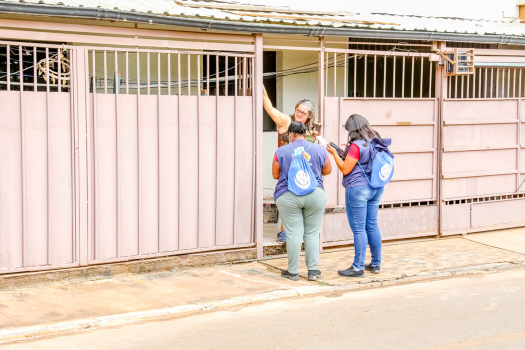 Uniformizados, os coletadores passam de porta em porta para conversar com os moradores. É feito um cadastro e a verificação do cartão de vacina. Caso haja algum imunizante em atraso, os profissionais oferecem a aplicação, que pode ser feita diretamente em casa ou em ponto fixo montado na cidade.