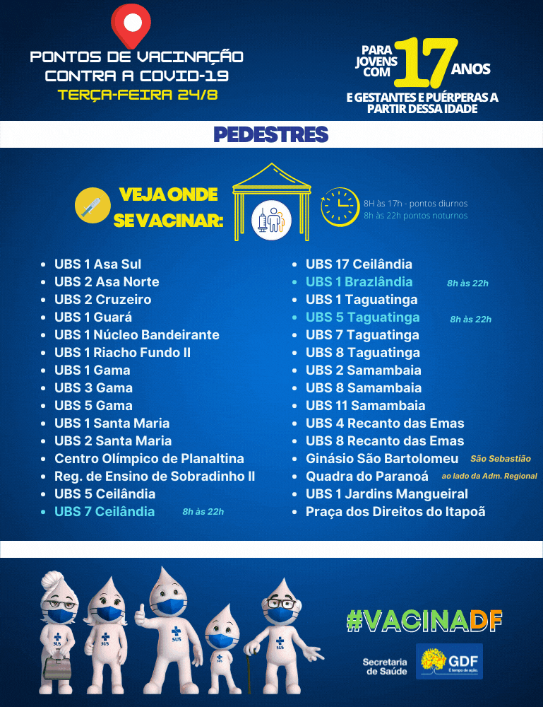 A vacinação de jovens a partir de 17 anos sem comorbidades começa amanhã (24), e para evitar escolha de imunizantes, já que o grupo só pode se vacinar com a Pfizer, o Distrito Federal separou 30 postos de vacinação exclusivos para o grupo. A informação foi passada pelo chefe da Casa Civil, Gustavo Rocha, em coletiva de imprensa nesta segunda-feira (23).