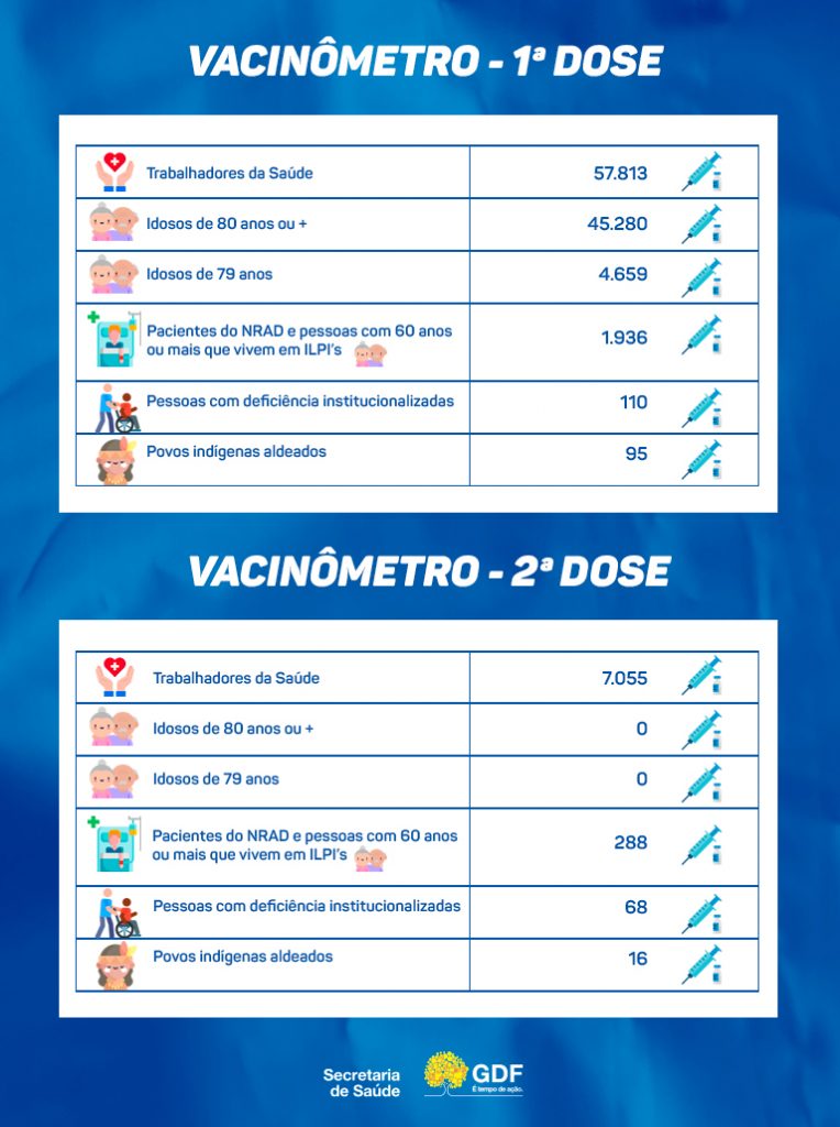 O GDF não tem previsão de quando receberá novas doses de alguma vacina contra a covid-19. A última remessa frustrou as autoridades. O Executivo esperava receber 60 mil doses do Instituto Butantan, mas ganhou apenas 37,4 mil.