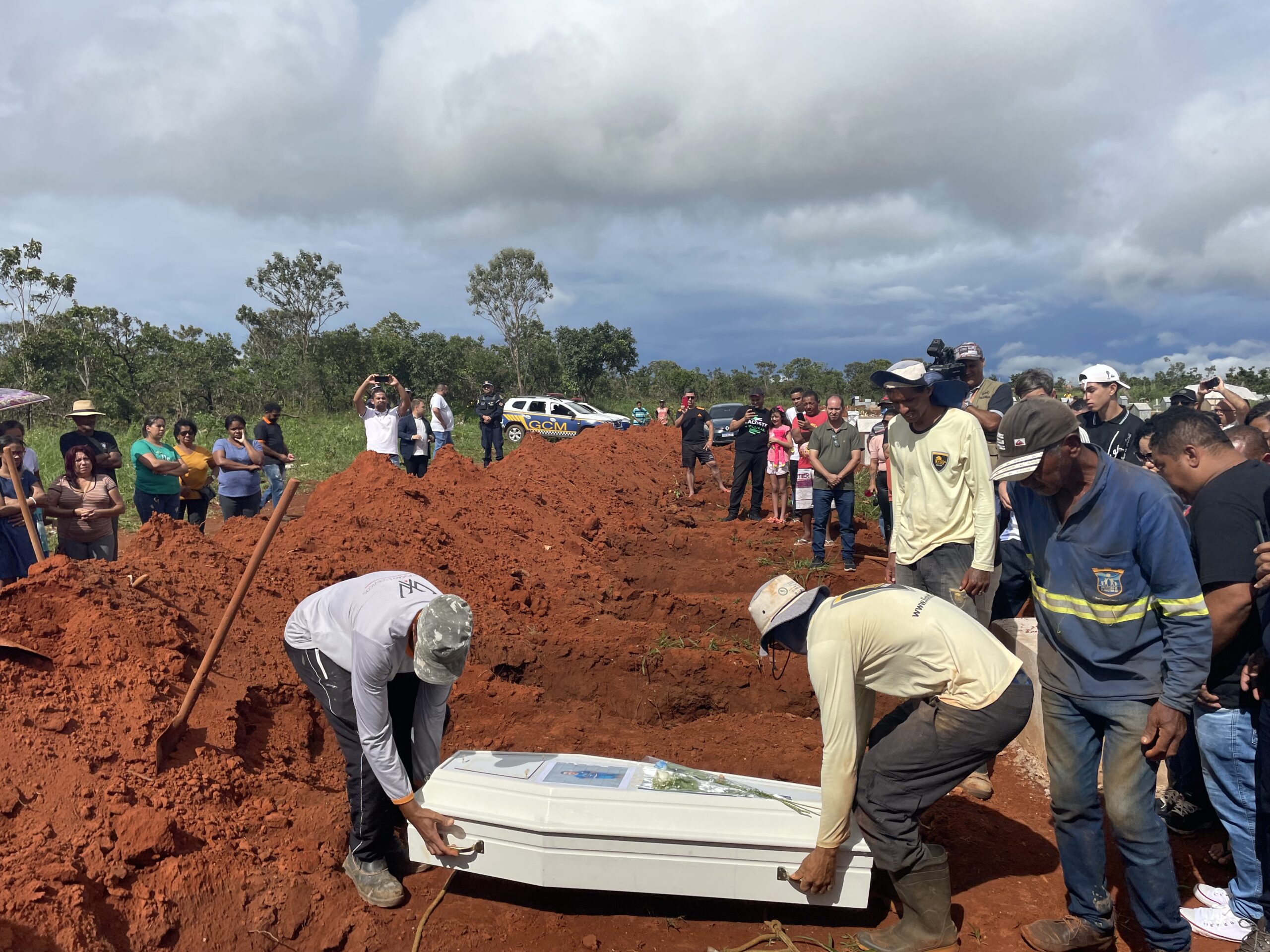 Entre lágrimas, os presentes clamaram por justiça enquanto viam os caixões serem enterrados. O velório aconteceu no cemitério de Planaltina de Goiás.
