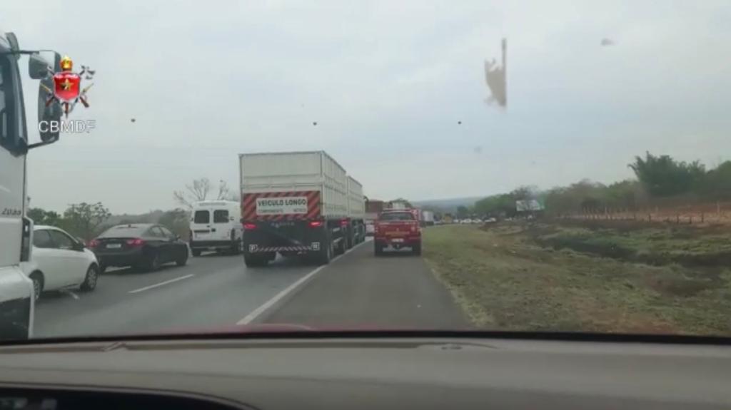Para o atendimento, foi necessário a interdição da BR, o que resultou em um engarrafamento de cerca de 1km.